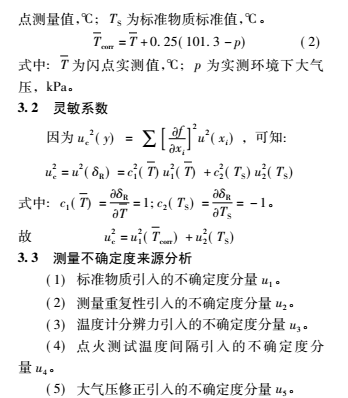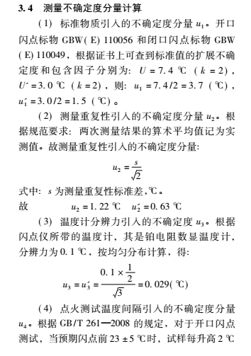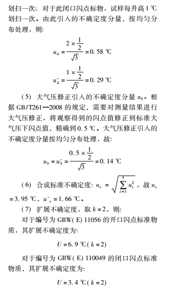 通過評定可得,開口 / 閉口閃點測定儀的不確定度主要來源于標(biāo)準(zhǔn)物質(zhì)、重復(fù)性測量及點火測溫間隔引入的不確定度,溫度計顯示和大氣壓修正引入的標(biāo)準(zhǔn)不確定度較小。