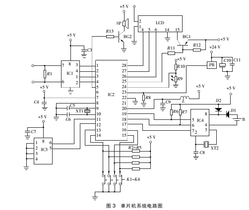 24 V 直流電源,單片機(jī) IC2 對(duì)系統(tǒng)進(jìn)行自檢。 若有異常,單片機(jī) |